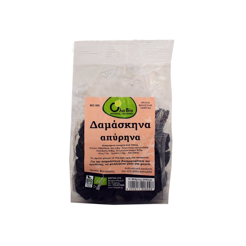 ΔΑΜΑΣΚΗΝΑ ΑΠΥΡΗΝΑ ΑΠΟΞΗΡΑΜΕΝΑ ΧΩΡΙΣ ΖΑΧΑΡΗ ΒΙΟ 200gr ΟΛΑ ΒΙΟ