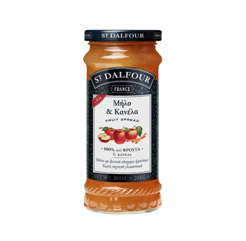 Όπως όλες οι μαρμελάδες St. Dalfour, η μαρμελάδα Μήλο & Κανέλα παρασκευάζεται στη νότια Γαλλία, στην κατάφυτη περιοχή του Bordeaux, ακολουθώντας την ίδια πατροπαράδοτη οικογενειακή συνταγή και τον ίδιο αργό, ήπιο τρόπο παρασκευής. Παρασκευάζεται 100% από φρούτα, με φυσικά σάκχαρα από χυμό σταφυλιού, χωρίς προσθήκη ζάχαρης ή άλλων γλυκαντικών, χωρίς συντηρητικά. Τραγανά κομμάτια μήλου αρωματισμένα με νότες από φρέσκια κανέλα, μαγειρεύονται αργά σε παραδοσιακούς βραστήρες, μέχρι να αγγίξουν την γευστική τους τελειότητα.