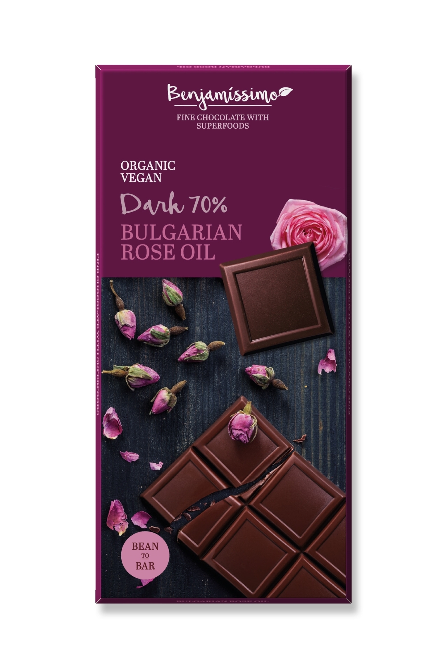 ΜΑΥΡΗ ΣΟΚΟΛΑΤΑ ΜΕ ΕΚΧΥΛΙΣΜΑ ΑΠΟ ΤΡΙΑΝΤΑΦΥΛΛΟ ΒΟΥΛΓΑΡΙΑΣ ΒΙΟ 70gr BENJAMINO