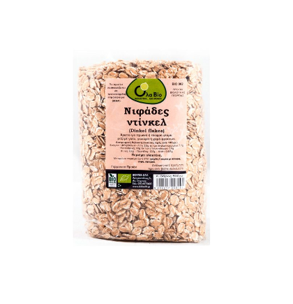 Οι νιφάδες ντίνκελ (Dinkel) – αλλιώς σπελτ με προέλευση τους Αλεξανδρινούς χρόνους και την περιοχή της Μεσοποτάμιας έχει μεγάλη συγγένεια με το γνωστό μας σιτάρι.Περιέχει πολλές πρωτεΐνες, μεγάλο ποσοστό σιδήρου, ψευδαργύρου και μαγνησίου καθώς και τις βιταμίνες Β1 και Β2.Επίσης είναι πηγή πολλών φυτικών ινών. Οι νιφάδες ντίνκελ ολικής είναι ιδανικές για πρωινό, στο γιαούρτι ή στο γάλα, όπως επίσης και για κρέμες γλυκά και κέικ.